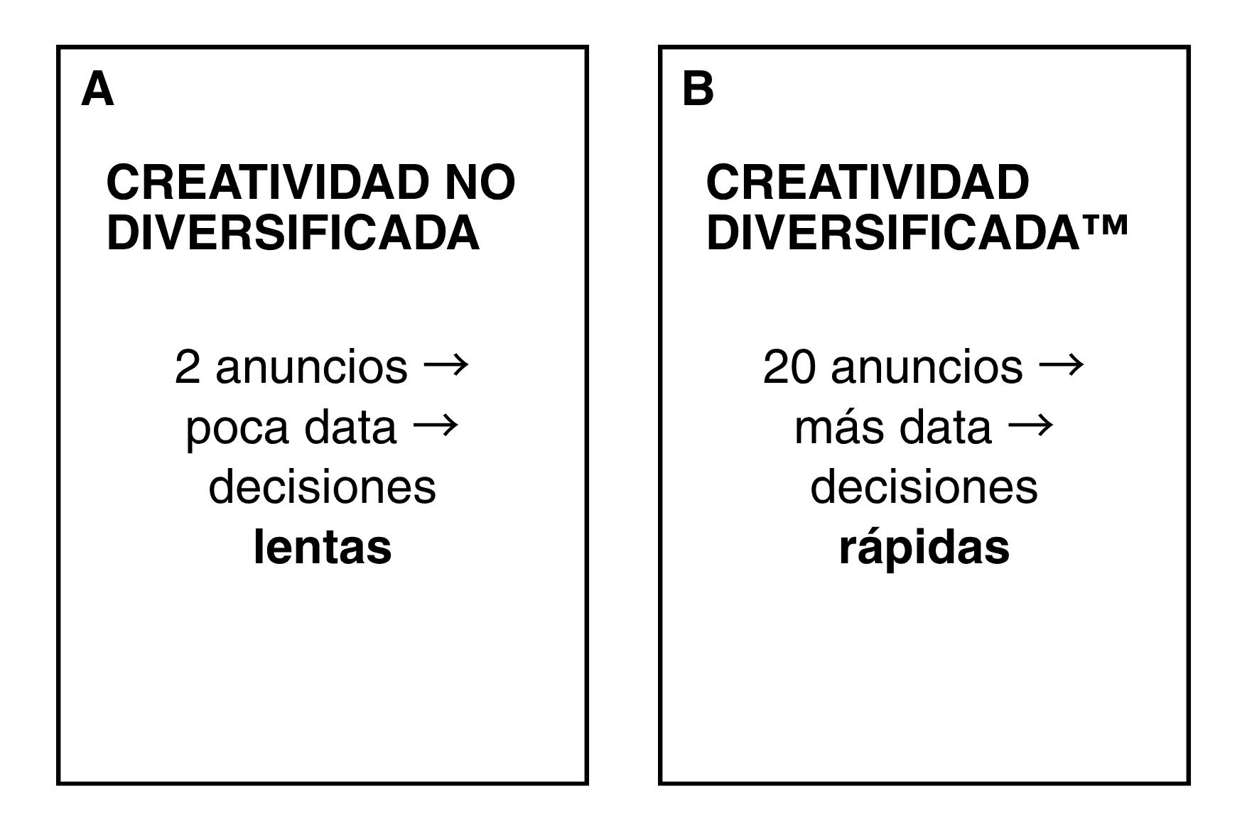 En lugar de apostar a grandes ideas, el sistema multiplica ángulos, mensajes y enfoques sobre una misma oferta para que el mercado responda con datos reales